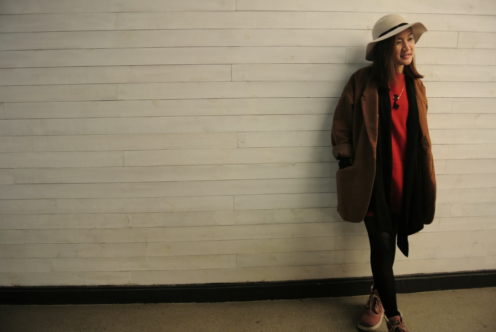 I love buying and wearing the "kid" or junior fashion item since they are much cheaper and fit me better. That's great, right? haha I am wearing the feminine knitted dress and the chelsea boots. I tried my best to dress down my two babies by matching with the "S" boomer jacket and the acid-washed denim cap. That's what I always do for all my outfit.